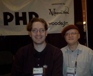 2004年8月末に、フェニックスでFileMaker Developer Conference 2004がありました。そこで、FX.phpの開発もとであるiViking.orgがブースを出展していたので、訪問してChris Hansenと記念写真をとりました。ブースはほとんど彼一人が3日間やっていたので、大変だったでしょう。