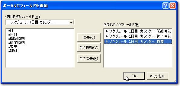 ポータルの中には、関連レコードの「開始時間」「終了時間」「概要」を配置することにします。