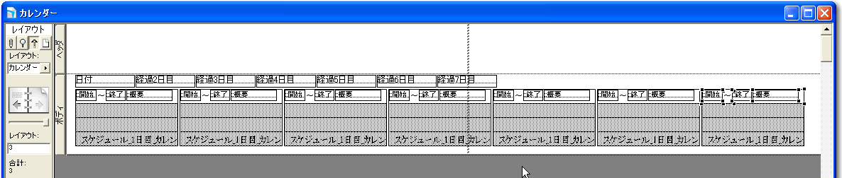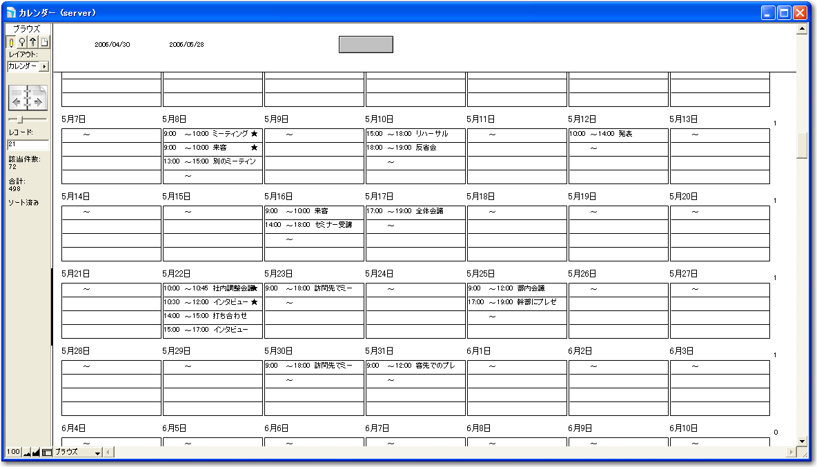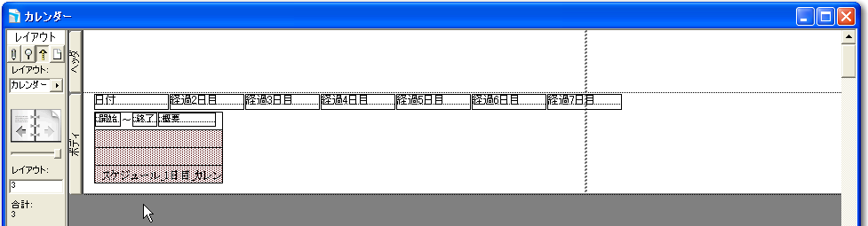 もちろん、そこから、1週間を1つの行に入れるということなどが必要になりますが、これはリレーションをうまく設定すると同時に、レイアウトの機能をうまく使うということや、ユーザインタフェースをうまく用意しておくということが必要になります。