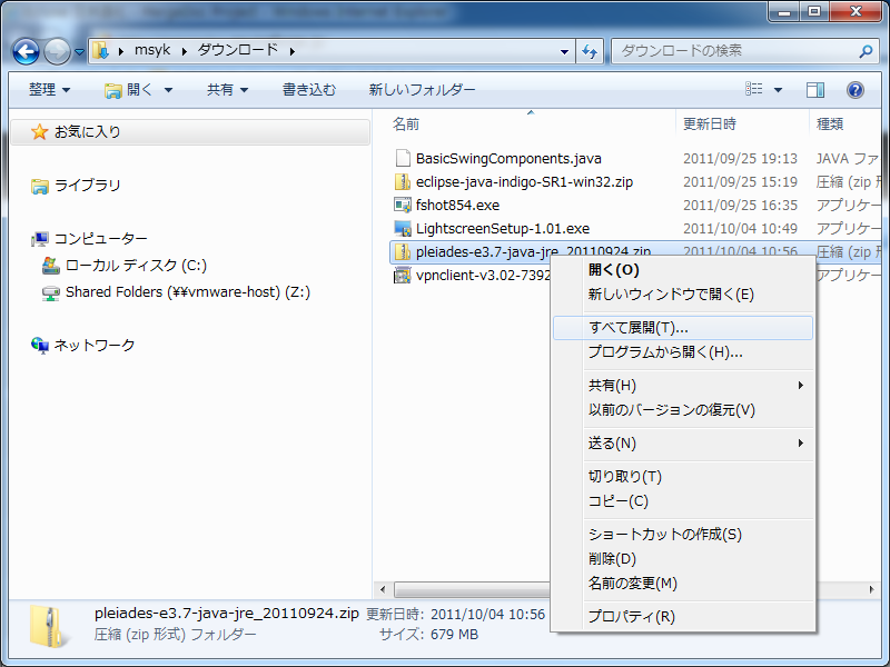 4ダウンロードしたファイルを右ボタンクリックして、「すべてを展開」を選択します。