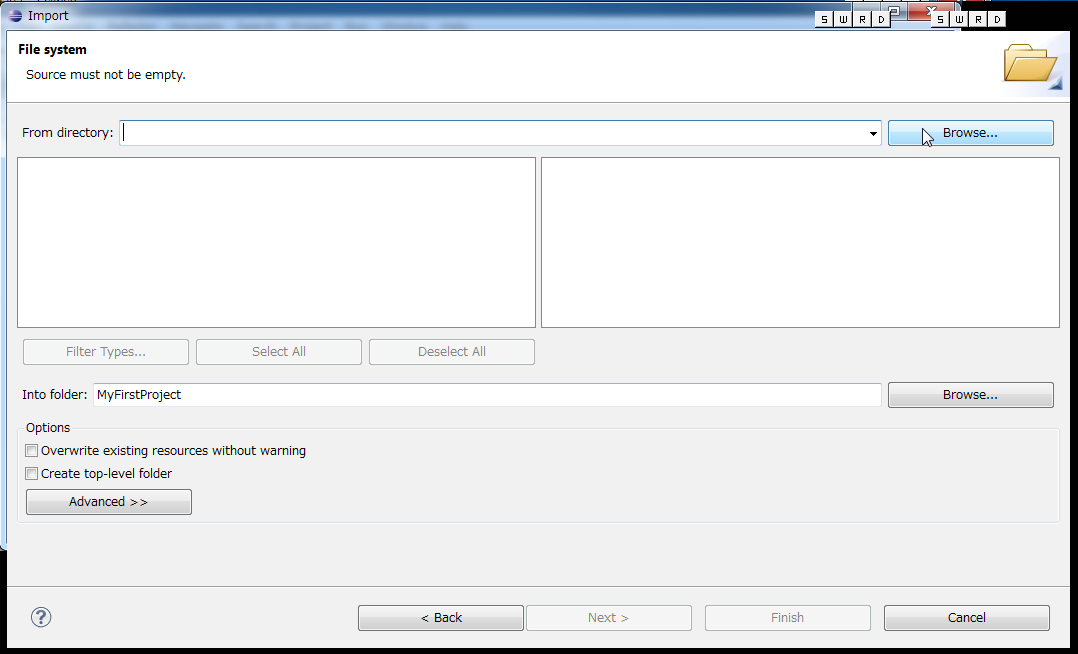 4ファイルの取り込みを行うダイアログボックスが表示されます。「From directory」の右の「Browse」ボタンをクリックします。