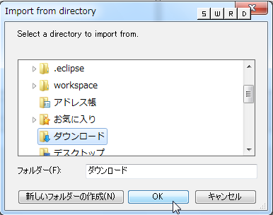5「Import from directory」というダイアログボックスで、BasicSwingComponents.javaファイルをダウンロードしたフォルダを指定します。そして、OKボタンをクリックします。