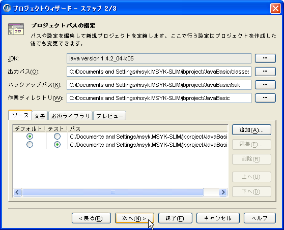 3プロジェクトウィザードの2番目のダイアログボックスは特に設定は変更せずに、「次へ」ボタンをクリックします。