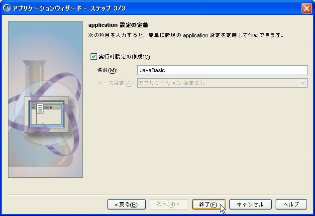 4ウィザードの3つ目のダイアログボックスはそのままにして、「終了」ボタンをクリックします。