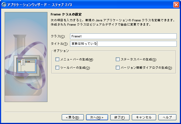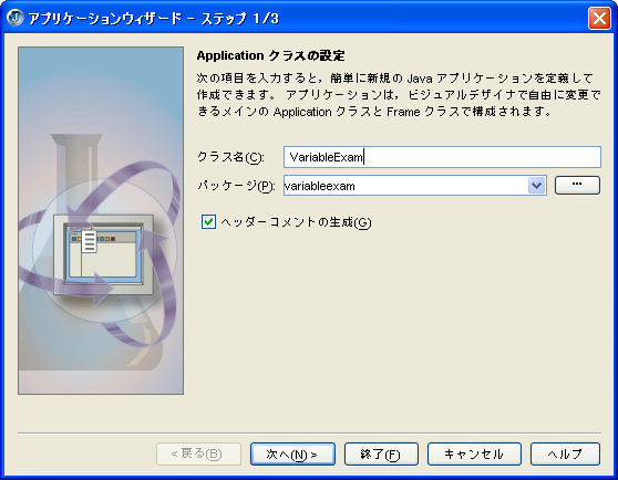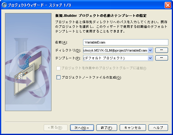 まず、この章でのプログラムを入れておくプロジェクトと、アプリケーションを、JBuilderで作成しておきましょう。プロジェクトとアプリケーションの作り方は、これまでのところで説明している通りです。以下のような名前を指定して、あとは既定値の状態でプロジェクトとアプリケーションを作っておきました。