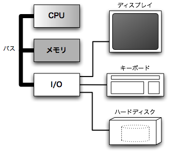 コンピュータは、まさに計算機であり、またデータ処理機であることは、すでにこれまでの経験で理解できていると思います。そのような動作をするコンピュータは、「CPU」「メモリ」「I/O」という3つのコンポーネントに分けられます。複雑な構成のコンピュータも、ほとんどの部品がこれらのどこかの分類に入ります。