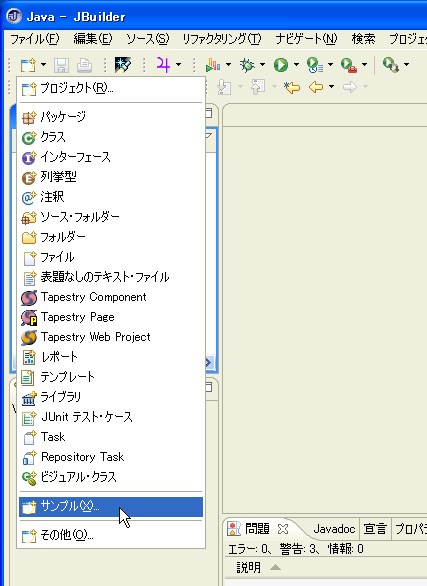 次にJBuilderに付属しているサンプルプログラムをプロジェクトに追加してみます。次のように作業します。