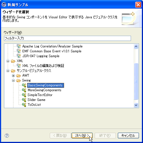 3展開された中にある「BasicSwingComponents」を選択して、「次へ」ボタンをクリックします。