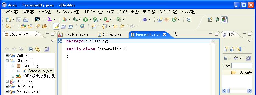 Personality.javaが1つだけ含まれているプロジェクトができました。Personality.javaはほんの少しだけです。(図のようになっていない場合は、このように修正してください。)