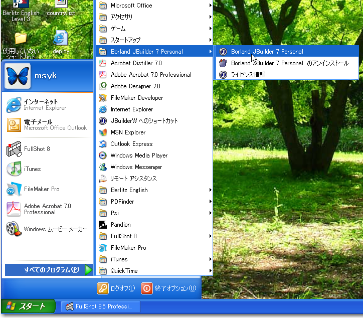 1スタートメニューの「すべてのプログラム」に「Borland JBuilder 7 Personal」という項目があります。そこから表示されるメニューにある「Borland JBuilder 7 Personal」を選択します。(スタートメニューの構成は使用するシステムにより異なります。)