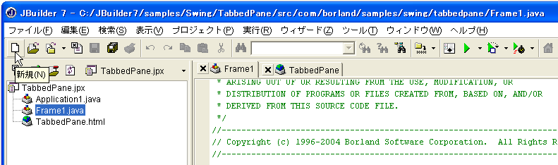 1JBuilderのツールバーのいちばん左にある「新規」ボタンをクリックします。