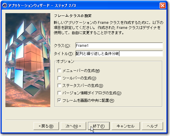 まず、この章で入力するプログラムとアプリケーションのひな形を作っておきましょう。手順については、これまでの章とまったく同じですので、ここでは手順は示しません。ウィザードの画面のうち、ポイントになる部分だけを示しておきます。