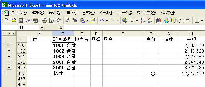 一定の条件にしたがって、データを集計することができます。集計結果は「アウトライン」という機能で、要約的な表示にしたり、詳細を含めた表示にすることができます。集計処理の方法と、アウトラインの使い方を説明します。