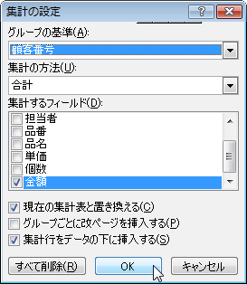 集計の機能を利用して、顧客ごとの合計売上金額を求める
