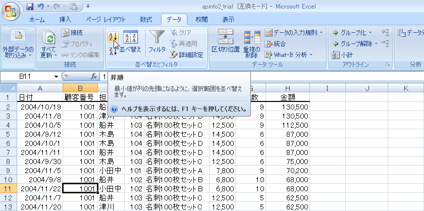 集計の機能を利用して、顧客ごとの合計売上金額を求める