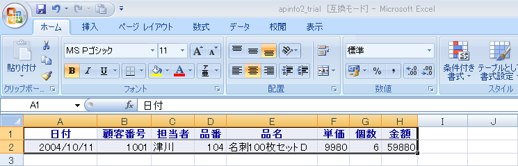 ここで、品番=104、単価=9980の合計金額の「59880」と書かれたセルをダブルクリックすると、以下の図のように、その計算のもとになったデータを別のシートに表示します。つまり、津川が値引きして、1001番の顧客に売ったというのが分かるというわけです。