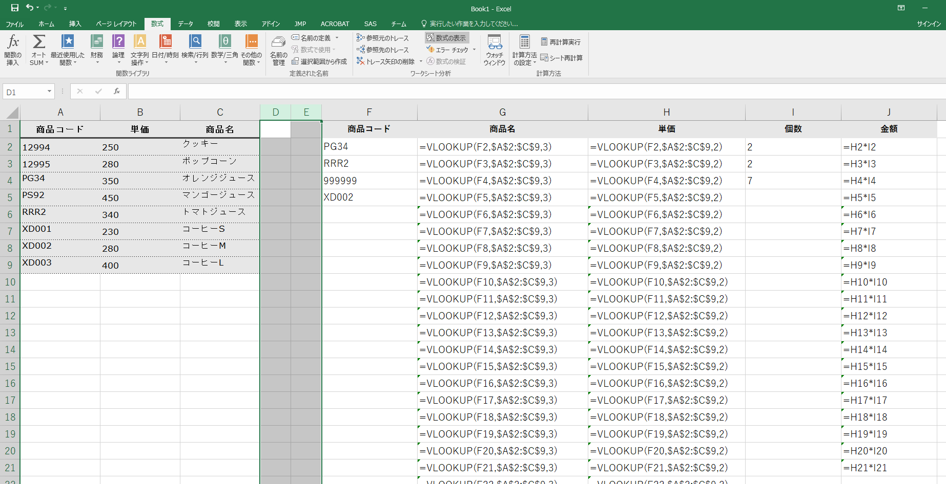 商品コード | 単価 | 商品名 |