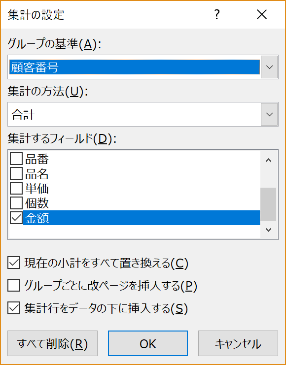 集計の機能を利用して、顧客ごとの合計売上金額を求める