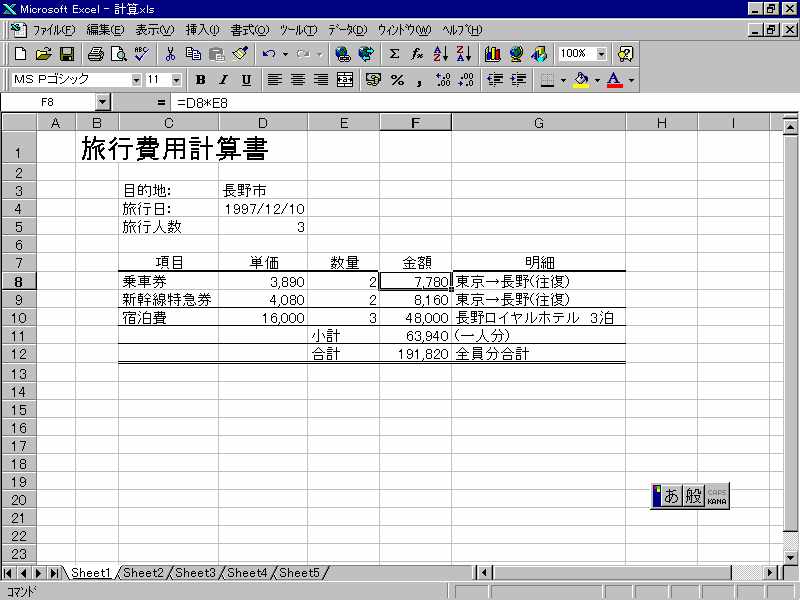 ���s��p�̌v�Z�������Ȃ��ȉ��̂悤�ȕ\���쐬���Ȃ����B