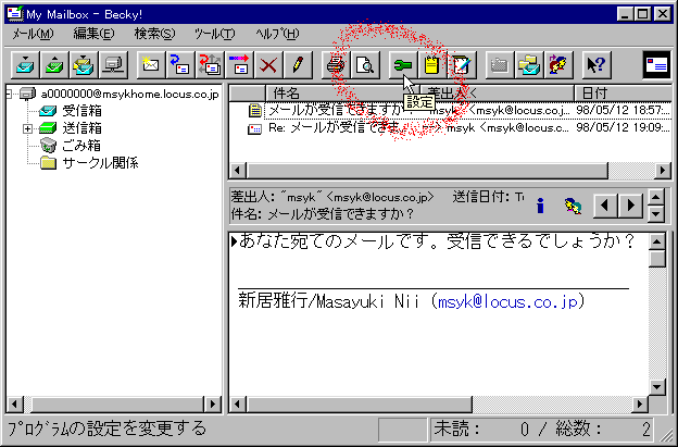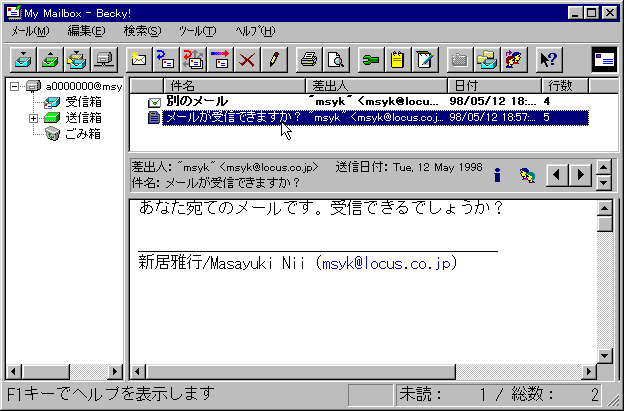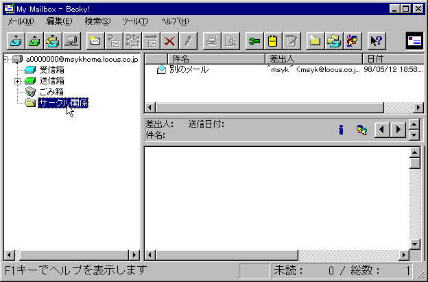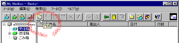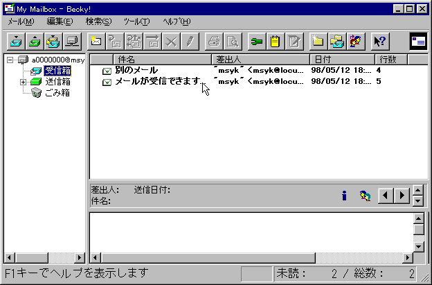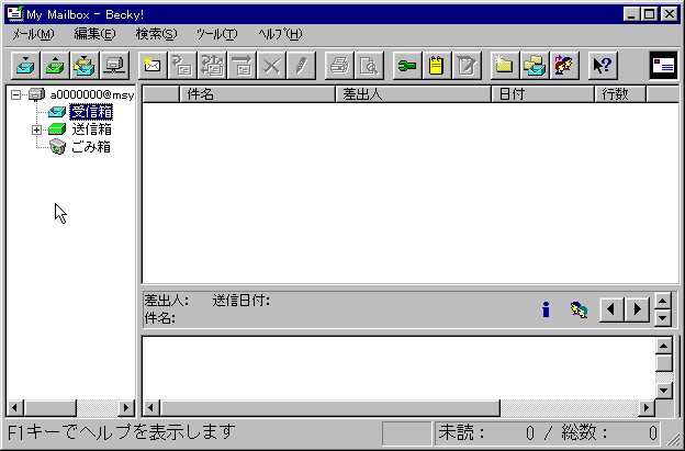 Becky!の画面が表示される。ここに、受信メールなどが表示される