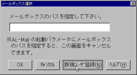 AL-Mailを最初に使用するとき、以下のように設定を行う。以下の設定は、基本的には、AL-Mailを使う最初の1回だけでかまわない。ただし、何らかの理由でうまく起動しなくなったときには、再度の設定を行う必要がある。その場合、「Mailbox」フォルダは削除する必要が出てくるが、そうすると、それまでのメールは消えてしまうので注意が必要である。ここでの設定のうち、いくつかは、「オプション」メニューの「ユーザ環境の設定」で変更できる。なお、「オプション」メニューの「LAN環境の設定」は、基本的には正しくなされているが、うまくメールのやりとりができないときには、その設定が正しくなされているかをチェックする。そこでは、POP3サーバ名、SMTPサーバ名ともに「mita4.cc.mita.keio.ac.jp」と設定する。「自分のマシン名」には「A学籍番号.cc.mita.keio.ac.jp」のように指定しておく。問題なく動く場合には、LAN環境の設定は変更しないこと。