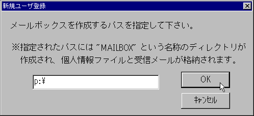 - 次のようなダイアログボックスが表示される。ここで、テキストボックスに「P:\」と入力して、OKボタンをクリックする