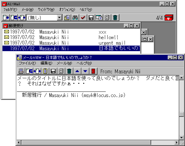 - AL-Mailの画面が表示される。ここに、受信メールなどが表示される