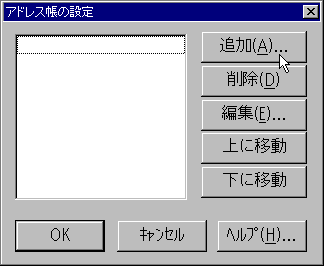 - 「オプション」メニューの「アドレス帳設定」を選択する。次のようなダイアログボックスが出る