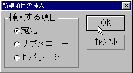 - 「新規項目」ボタンをクリックすると、次のようなダイアログボックスが出てくるので、通常は「宛先」を選んでOKボタンを押す