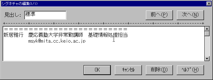 - 「シグネチャ編集」ボタンをクリックする。次のようなダイアログボックスが出てくる