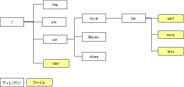 ハードディスクなどにファイルとしてデータが保存されますが、単にだらだらと並んでいるわけではありません。ファイルはディレクトリに分類して入れられます。ディレクトリは、Windowsでのファイルとまったく同じものです。